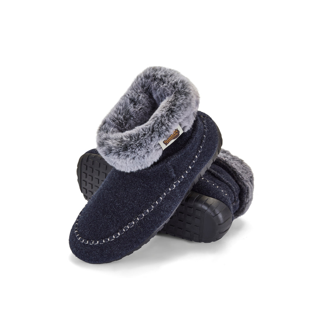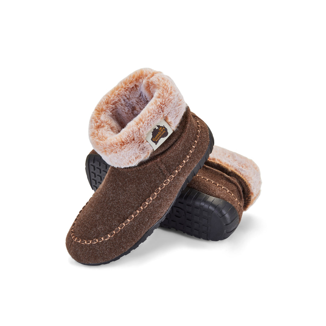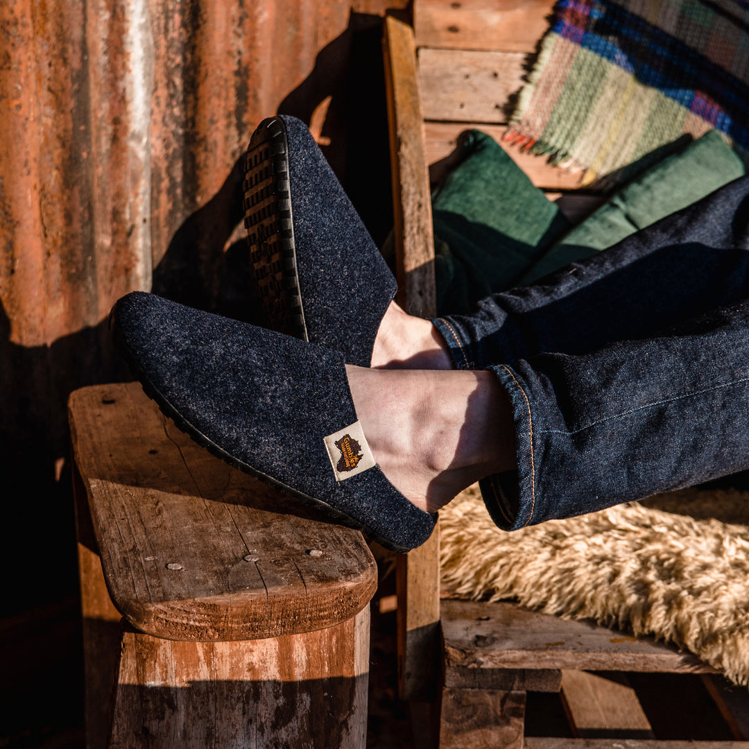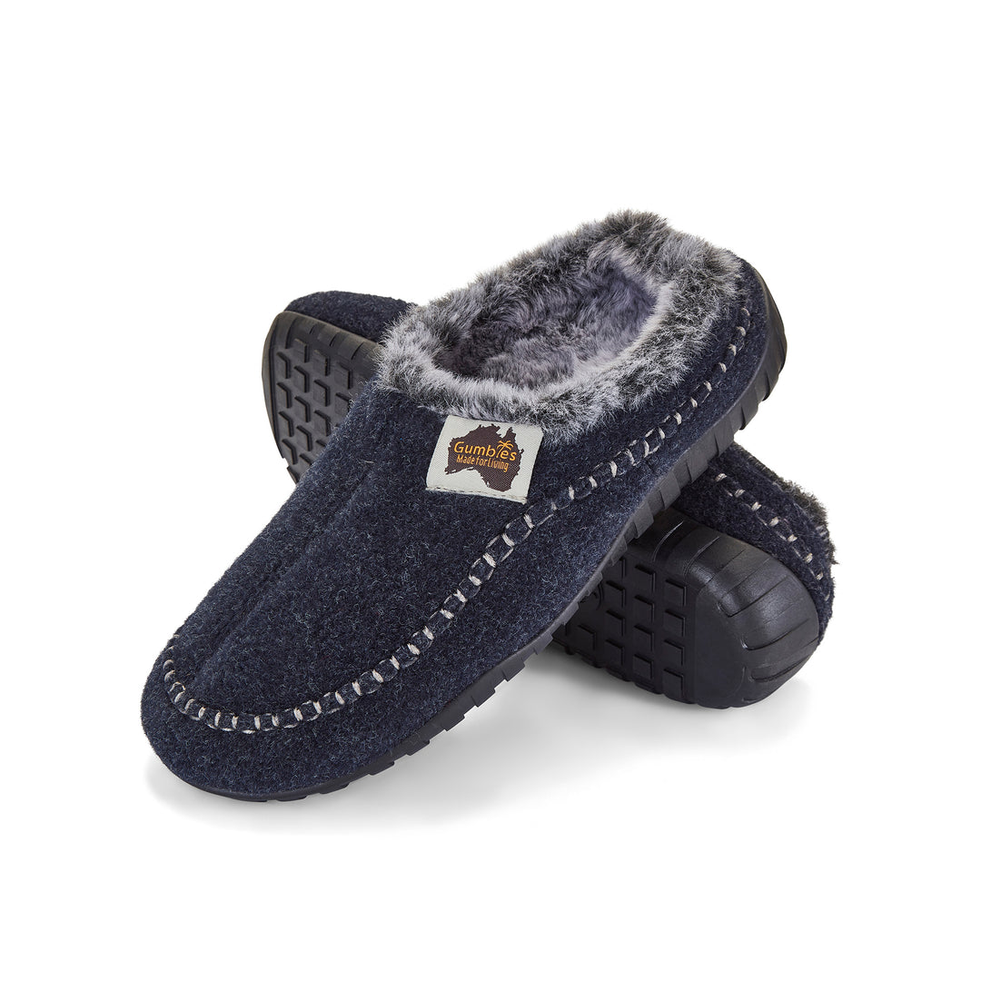 Gumbies slippers are designed to take you from the couch to the back door and beyond. Our signature high-grip Gumtread™ outsoles are flexible and long lasting. The soft, warm double-layer uppers are constructed from second life felt, made from recycled plastic and feel as good as they look.